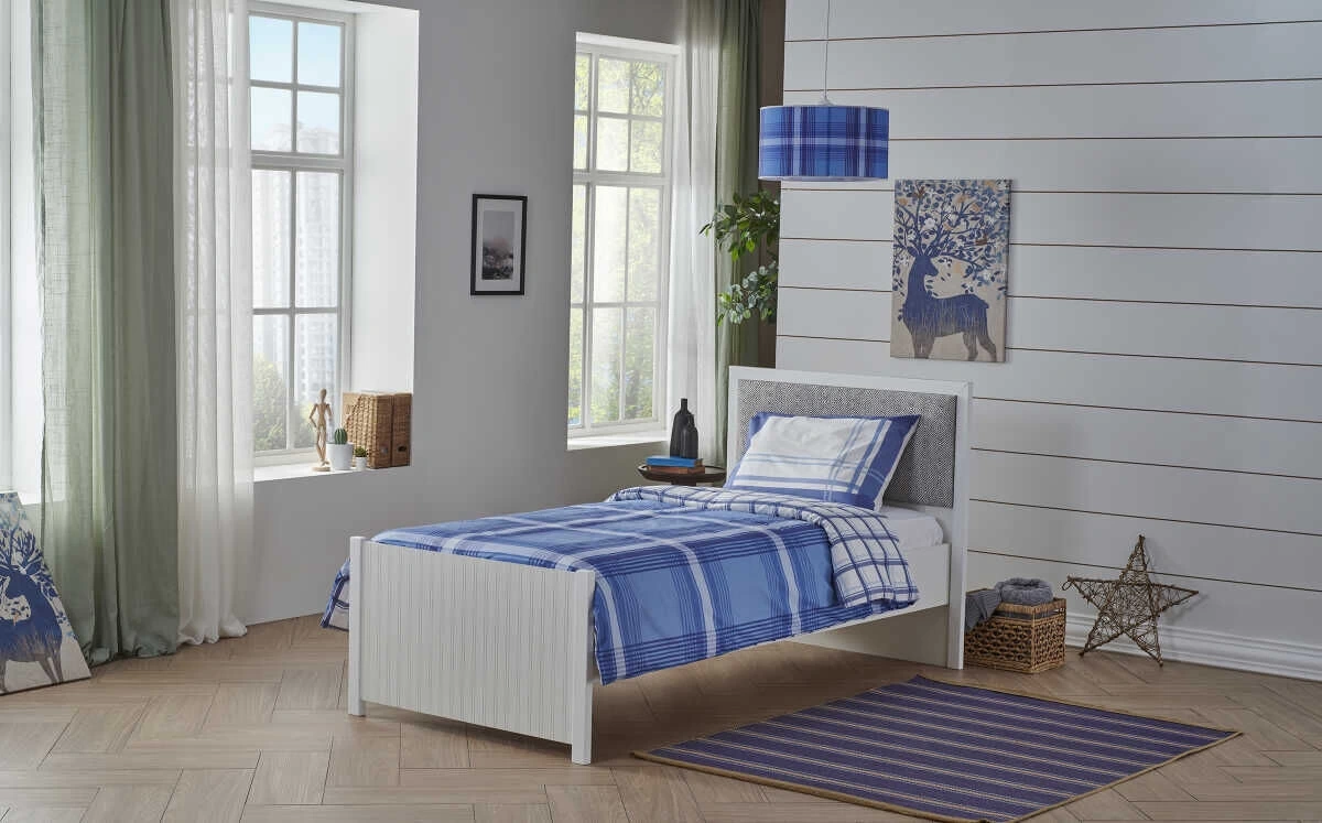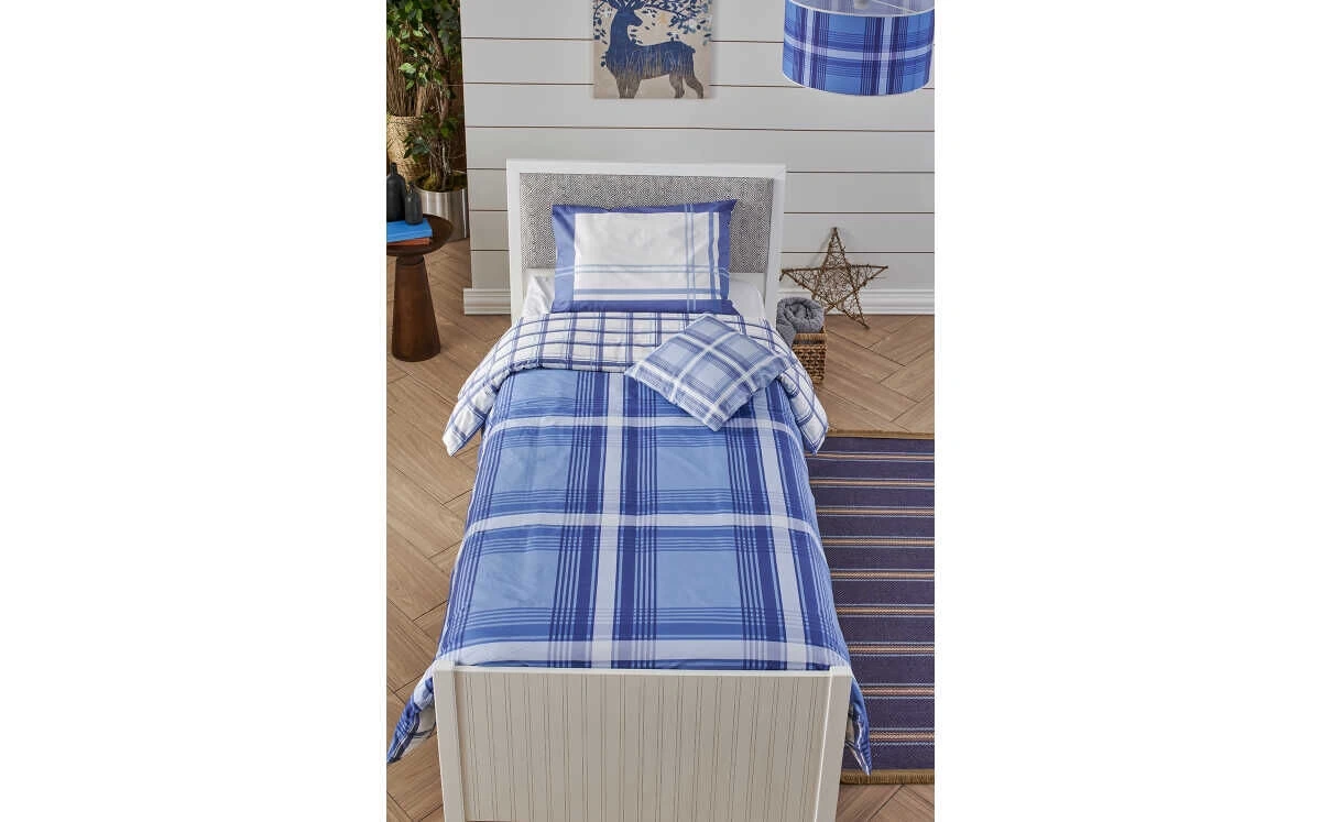 Anka Ernest Mavi Kareli Nevresim Seti