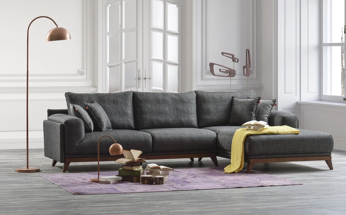 Doğal ahşap ayakları ve bazası ile dekoratif anlamda odanın genel havasına önemli katkılarda bulunan bu sağ köşe takımı, hyper sünger desteği ile konforu doyasıya yaşamayı sağlarken sırt minderleriyle de bel kısmını destekliyor. Özel keten kumaş seçeneği sayesinde eşsiz bir estetik görünümü evlere getiren bu sağ köşe takımı modeli, geniş kullanım alanı ile de fonksiyonel yapısını net bir şekilde ön plana çıkarıyor.