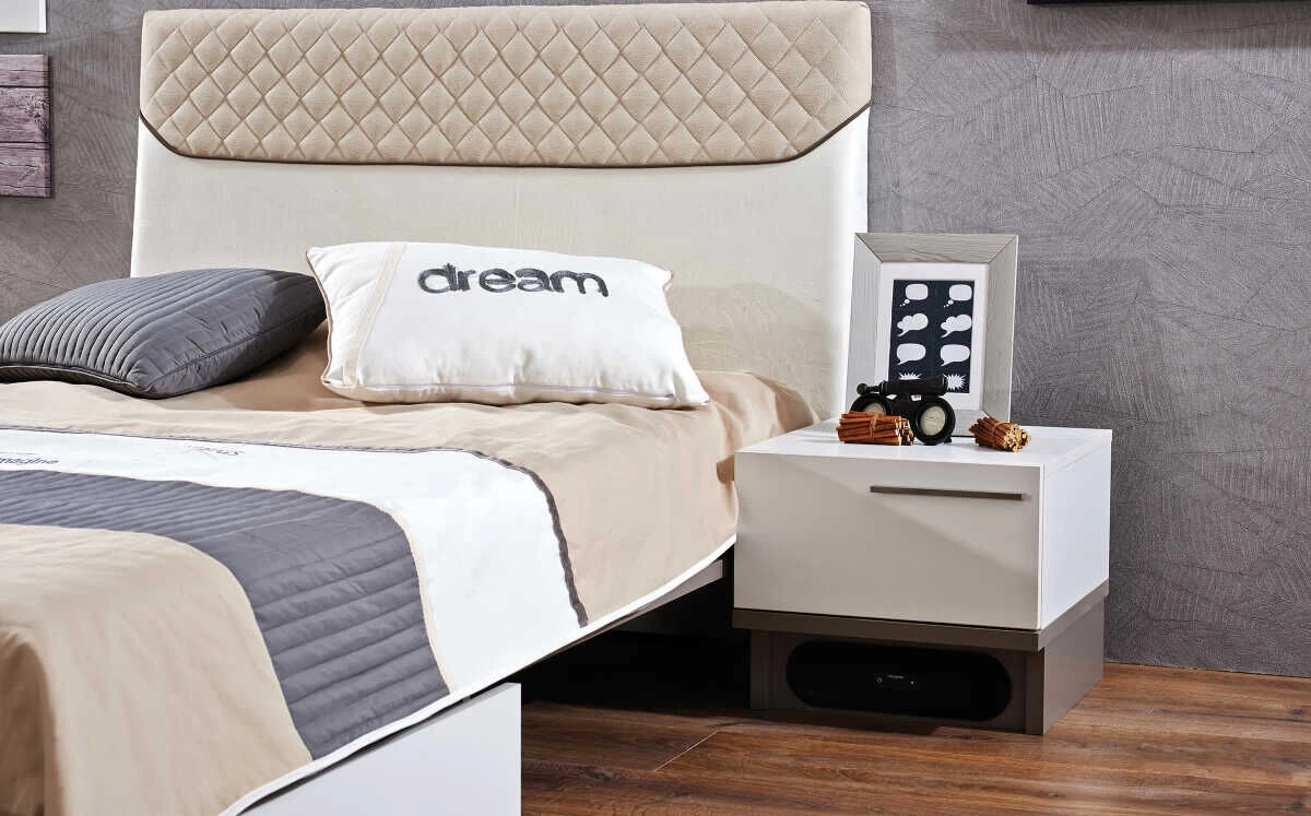 - Campus Techno Komodinde USB giriş özelliği ve gizlenmiş ses sistemi seçeneği