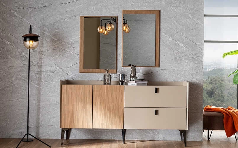 • Konsolda iki kapak ve iki çekmece seçeneği ile depolama imkanı