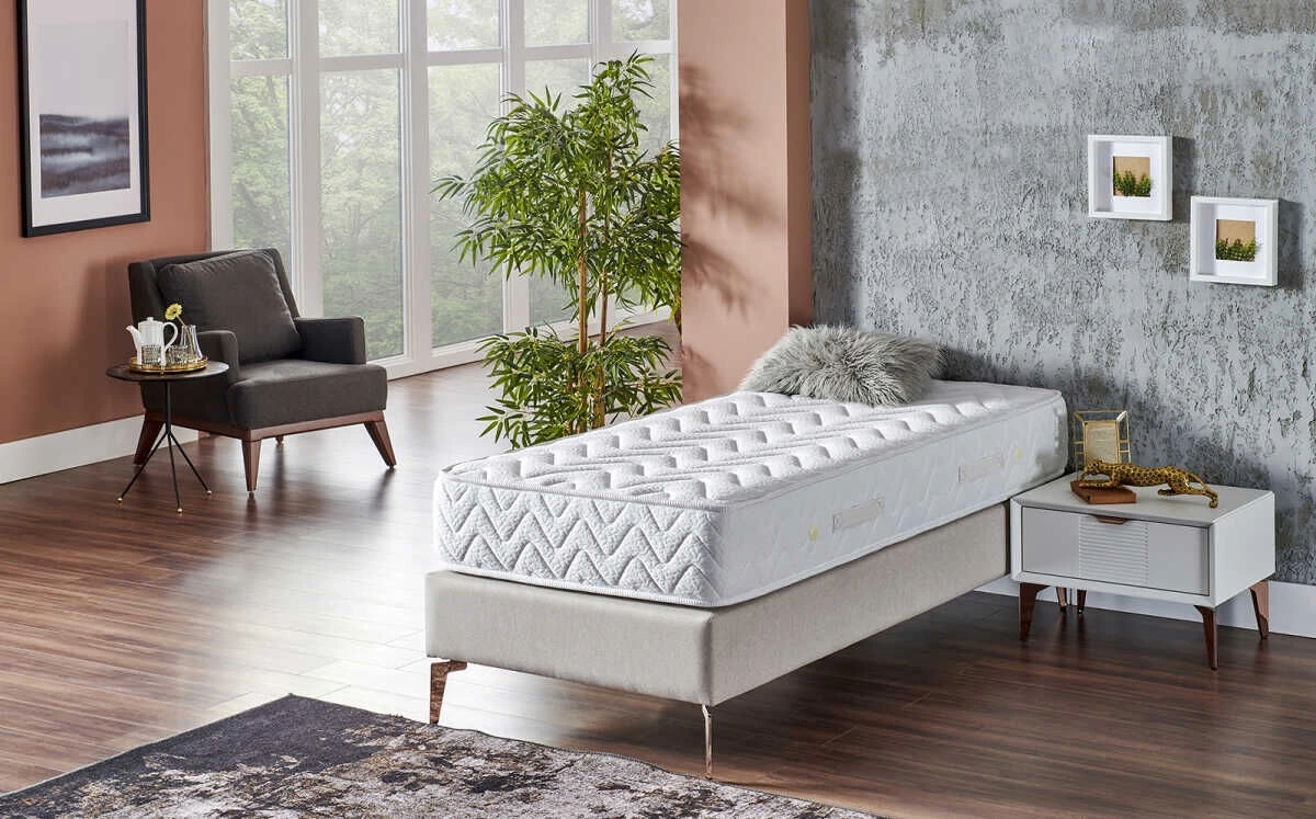 90x190 boyutlarında ve 24 cm yüksekliğindeki tek kişilik Hotel Delüx yatak size konforlu bir uyku deneyimi yaşatmayı hedefliyor. Yatağın tasarımında multi yay sistemi ve yüksek yoğunlukta sünger teknolojisi kullanılarak konforunuz maksimum seviyede destekleniyor. Orta sertlik düzeyinde üretilen yatağın 3 aylık periyotlarla değiştirilmesi tavsiye ediliyor. Ürün içeriğinde bulunan hava kapsülleri yatağın nefes almasını sağlıyor. Ayrıca ürün tasarımında örme yatak kumaşı, silikonize elyaf, tela ve kapitone süngeri tercih edilerek konfor düzeyi artırılıyor. Vücudun ağırlığını yatağa eşit dağıtan sert ve yumuşak keçe uygulamasıyla gece boyu rahat bir uyku çekmeniz mümkün hale geliyor.