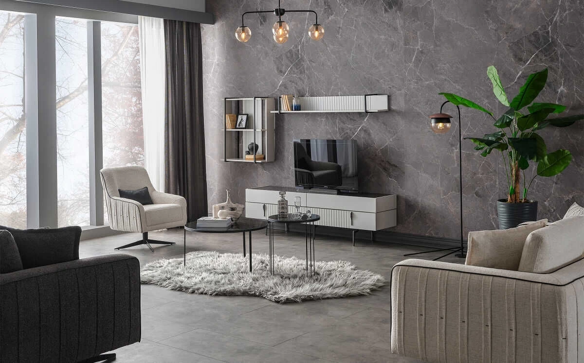 - Metal füme renk kulp ve ayaklar ile lüks dokunuş
