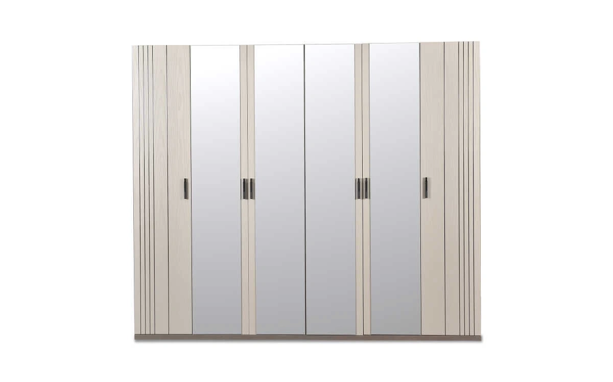 Giyeceklerinizi rahatlıkla muhafaza edebileceğiniz büyüklükteki gardırop, 6 kapaklı yapısı ve şık tasarımı ile ortama zarafet kazandırıyor. Ürünün 6 adet kapağından 4 tanesinin aynalı olması da ürünü ayrıca cazip kılıyor. Aynaları sayesinde ortama derinlik kazandıran bu gardırop, iç mekânı daha ferah kılıyor. Yatak odanızdaki diğer ürünlerle de uyum sağlayan bu gardırop, iç dizaynı, renk seçimi ve sade hatları ile kullanıcıyı etkilemeyi başarıyor. Siz de hem şık, hem de pratik ve sağlam bir gardırop arıyorsanız, tercihinizi Prado’dan yana kullanabilirsiniz.